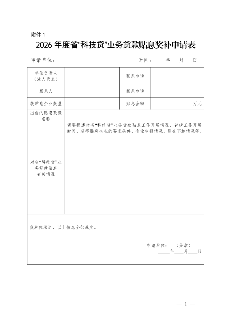 1.《2026年度省“科技贷”业务贷款贴息奖补申请表》(见附件1);